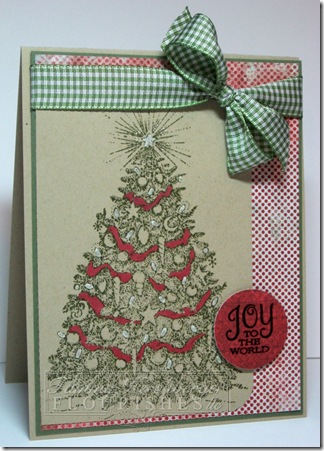 Love the tree stamped on kraft....with the touch of the red ribbon.