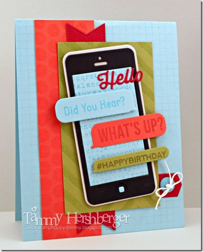 My husband and I have a good friend…he’s a single dad, and just all-around nice guy. He recently commented on one of the cards I posted on Facebook and said “When am I ever going to get one of these fabulous cards?” and mentioned that his birthday was coming up. What could I do? I had to make him a card! Since I have yet to use my LLD Smart Phone Die-Namics and matching LLD Friend Request stamp set from My Favorite Things, I thought now would be a good time to put it all to use. And the sketch #182 was the perfect layout, too!
